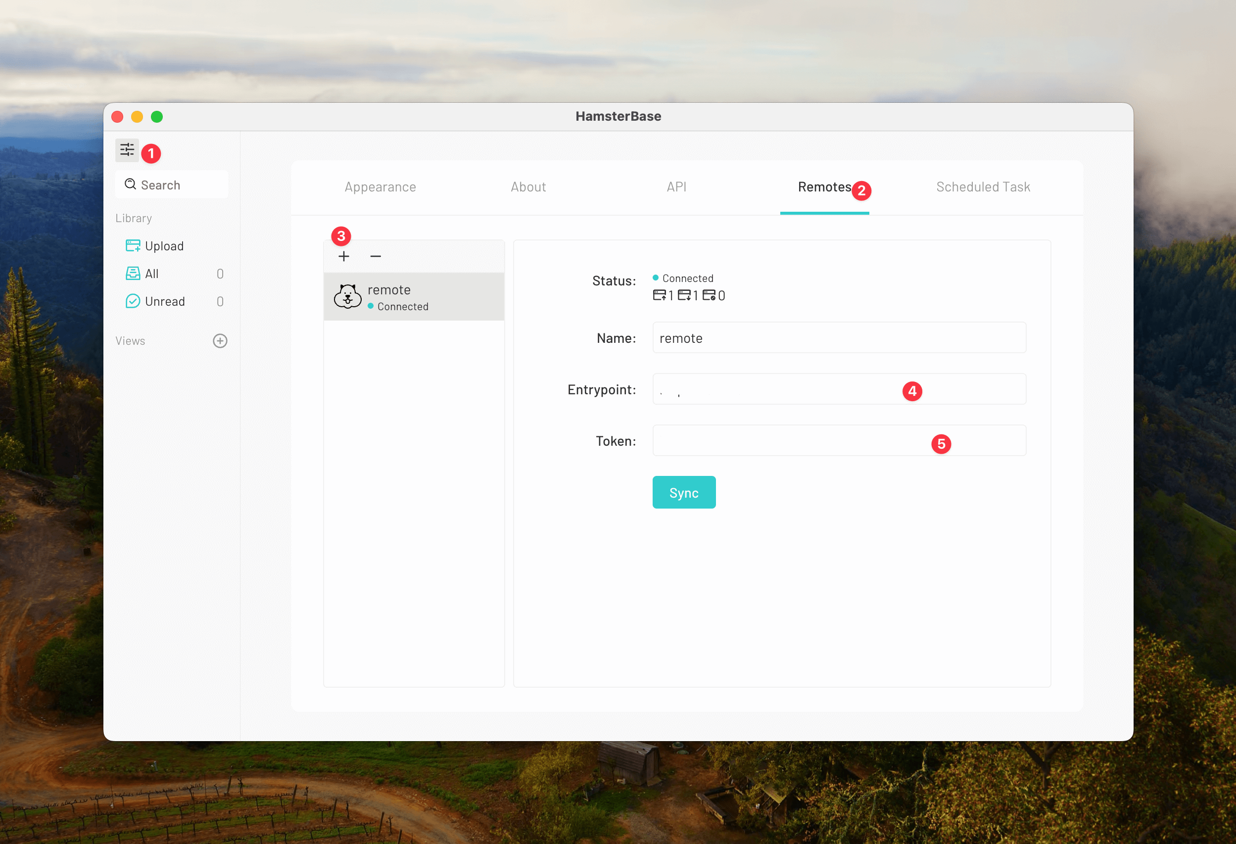 - Enter the Entrypoint and API token in the respective fields (positions 4 and 5 in the image).