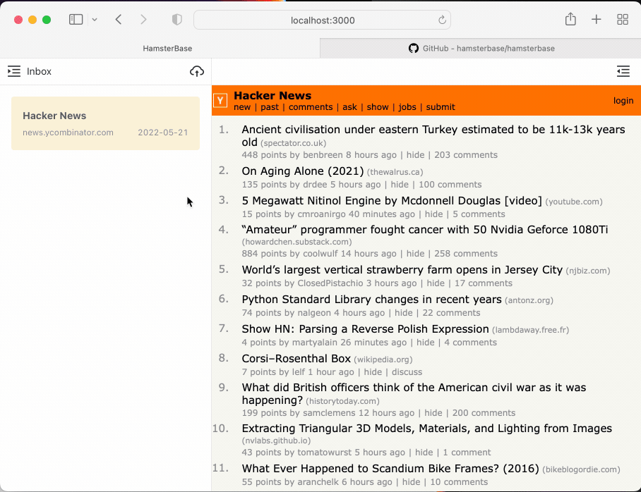 Just put the file in $path_of_your_database/workspace/inbox and hamsterbase will import it automatically. Just refresh the page and you will see the page you just imported。